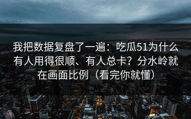 我把数据复盘了一遍:吃瓜51为什么有人用得很顺、有人总卡?分水岭就在画面比例(看完你就懂)